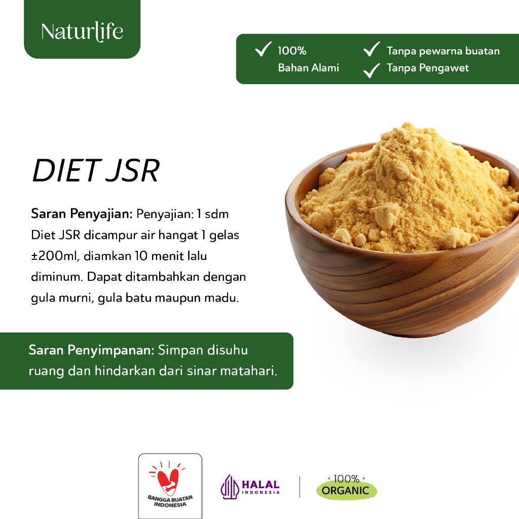 1 sdm Diet JSR dicampur air hangat 1 gelas ±200ml, diamkan 10 menit lalu diminum | Dapat ditambahkan dengan gula murni, gula batu maupun madu