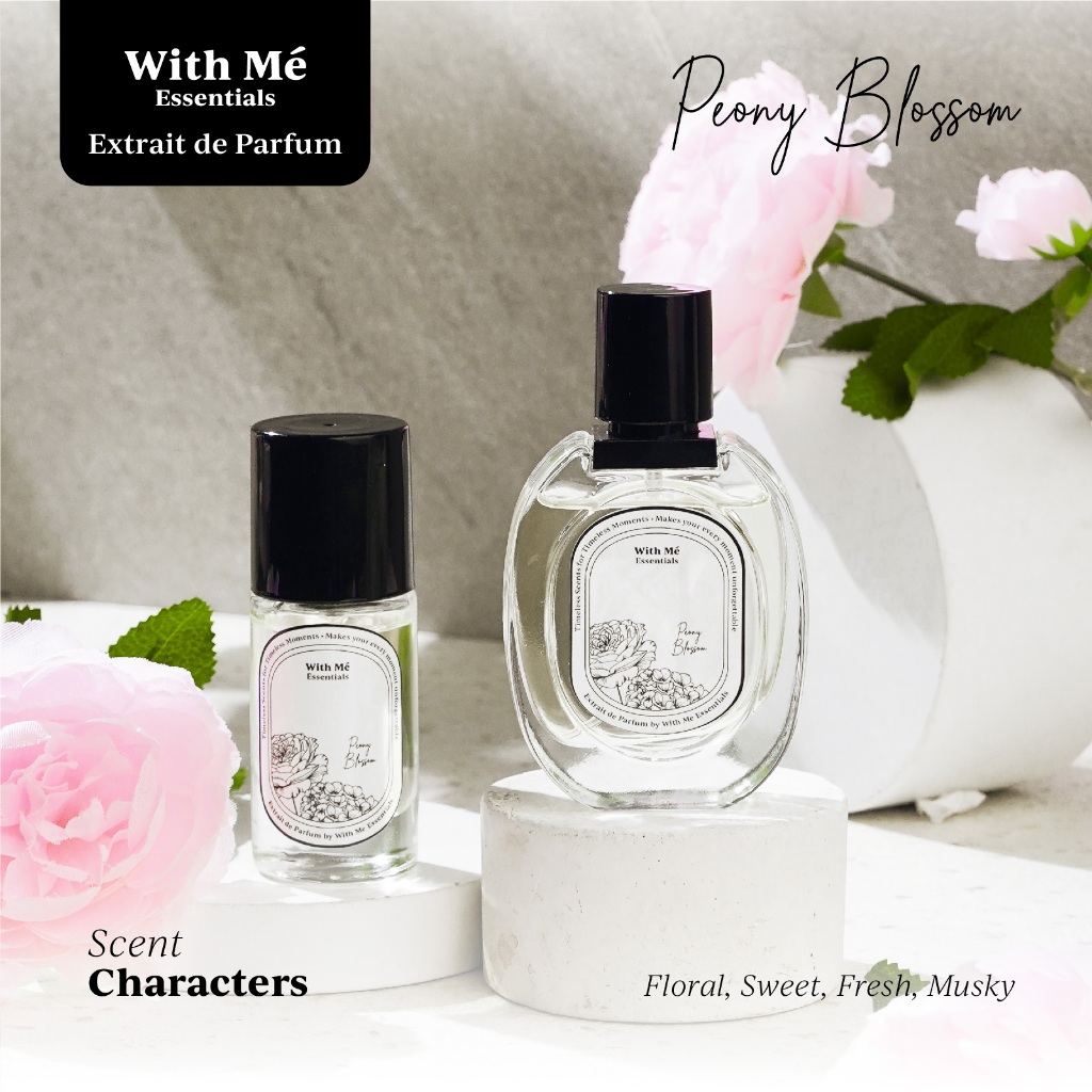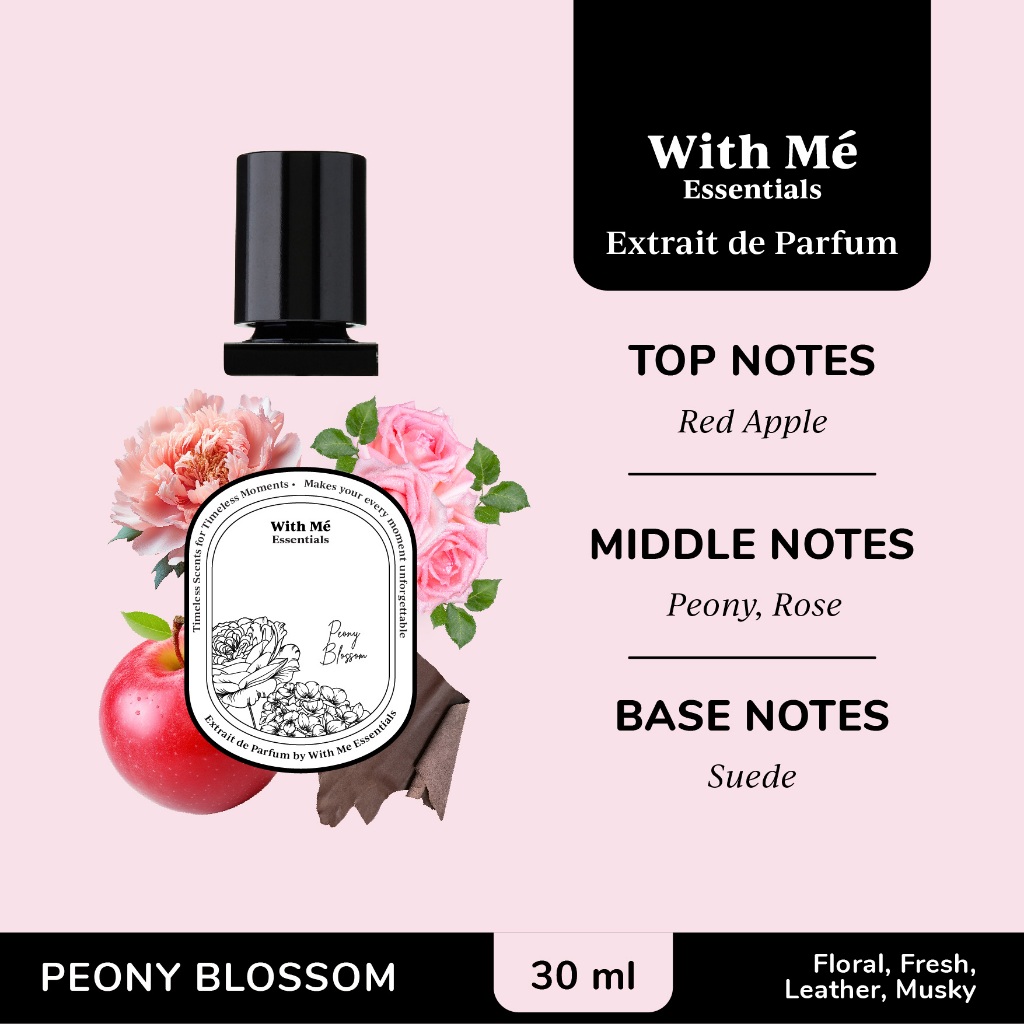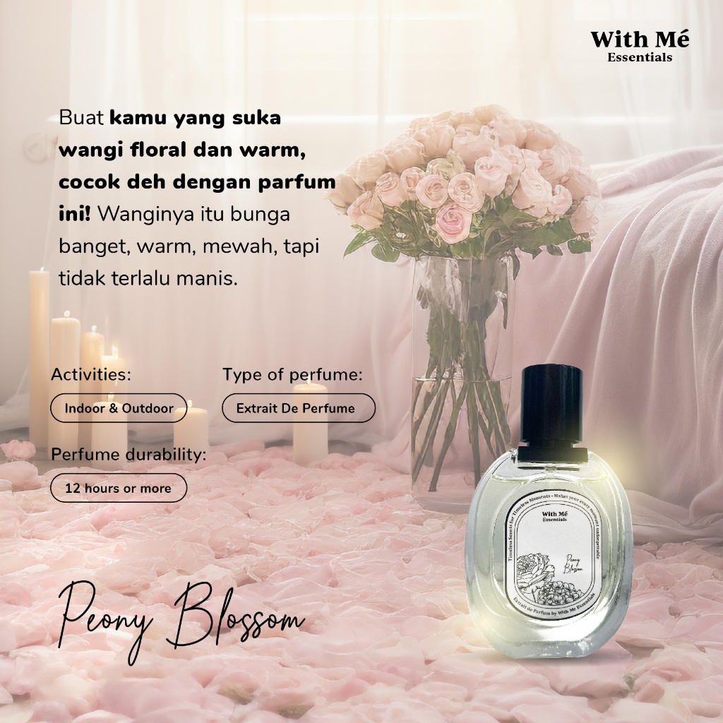 With Me Essentials - Peony Blossom Wewangian yang terinspirasi dari Jo Malone Peony & Blush Suede. Tipe parfum yang wanginya ceria, floral yang fresh, dan playful. Pertama kali spray hint apelnya light banget, lalu berangsur berubah menjadi kombinasi floral dengan dominasi bunga peony dan rose ditambah aroma suede yang lembut muncul. Serasa lagi di fairytale garden, so f lowery, yet sweet, and embracing dream!