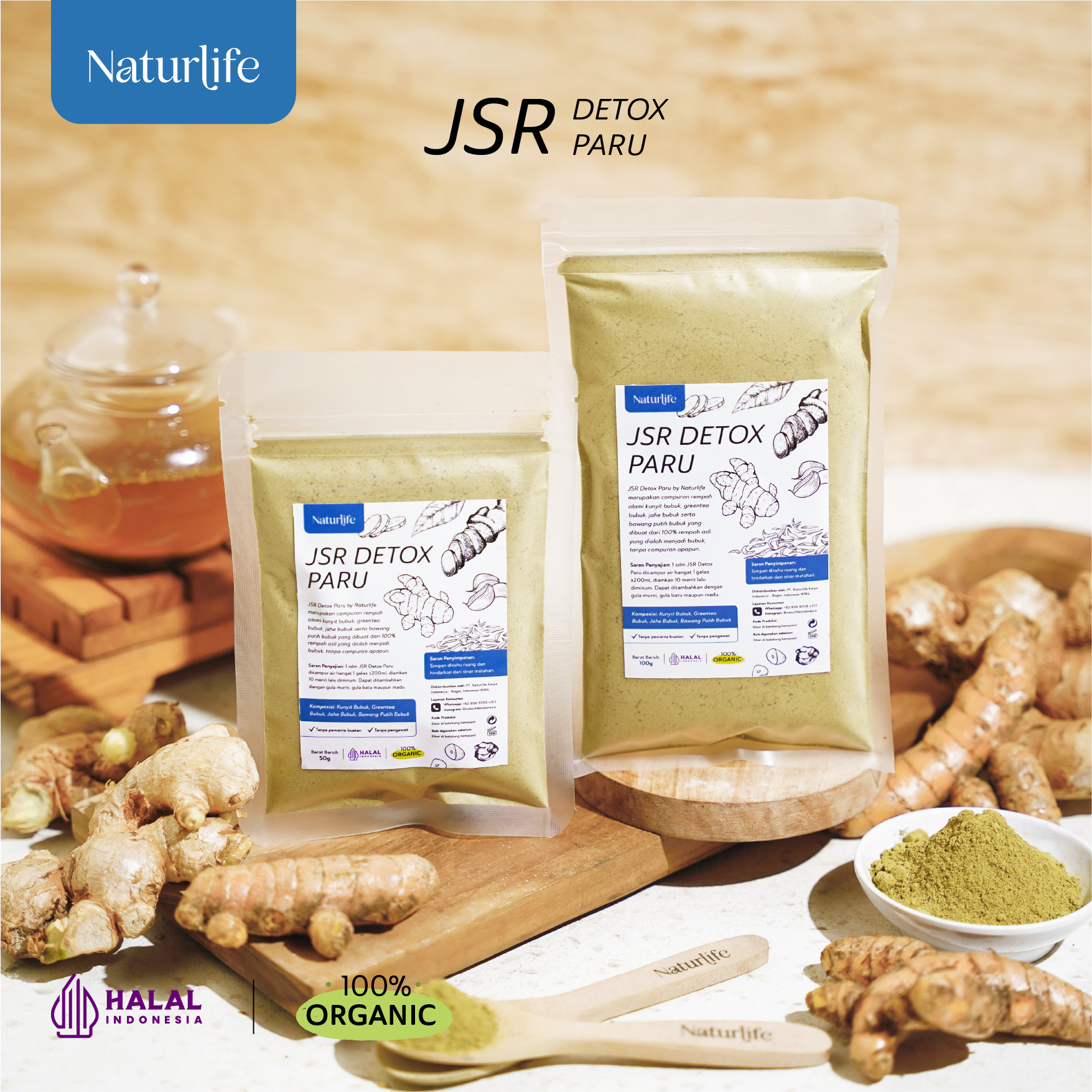 JSR Detox Paru by Naturlife merupakan JSR Detox Paru by Naturlife merupakan campuran rempah alami kunyit bubuk, greentea bubuk, jahe bubuk serta bawang putih bubuk yang dibuat dari 100% rempah asli yang diolah menjadi bubuk, tanpa campuran apapun.