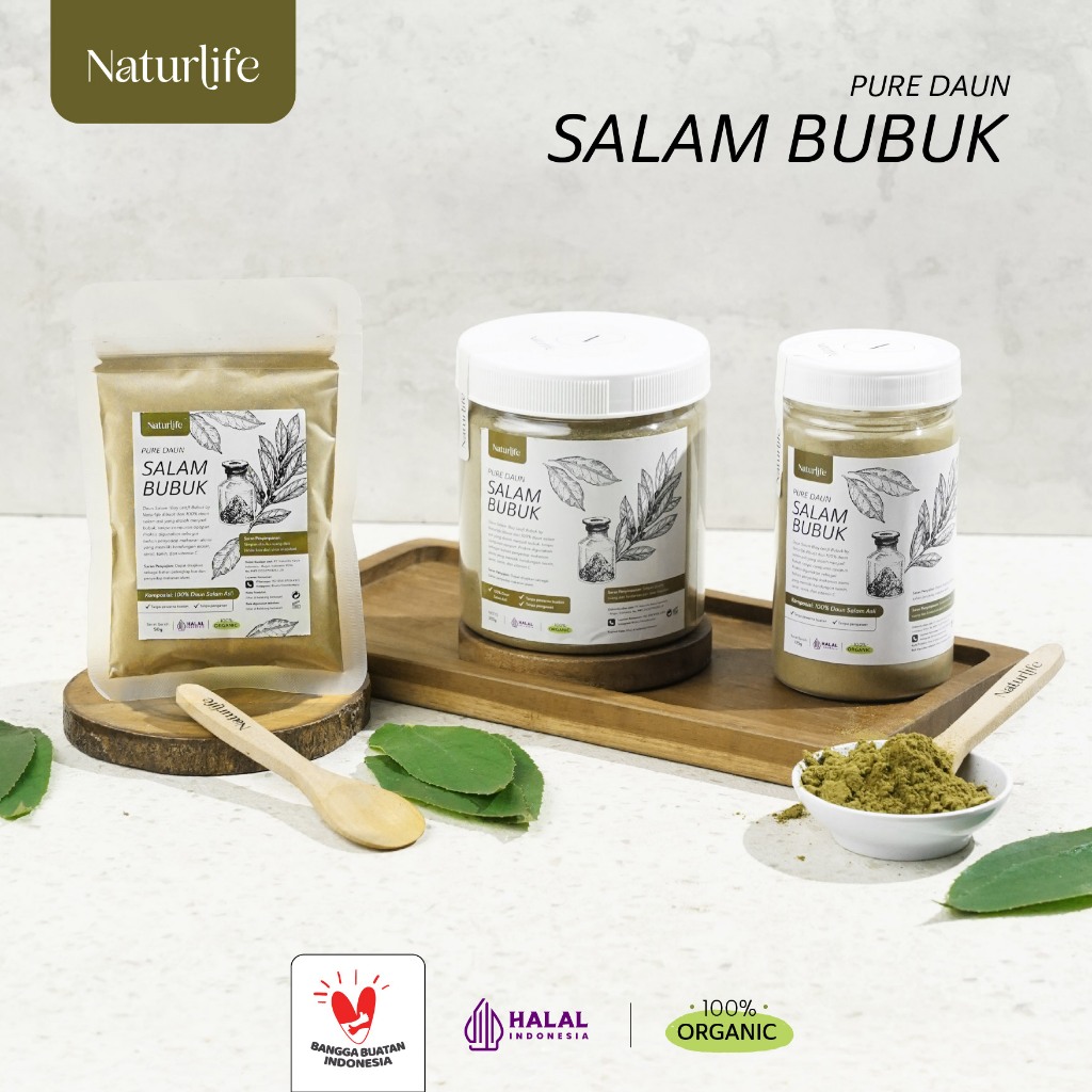Daun Salam (Bay Leaf) Bubuk by Naturlife dibuat dari 100% daun salam asli yang diolah menjadi bubuk, tanpa campuran apapun. Praktis digunakan sebagai bahan penyedap makanan alami yang memiliki kandungan niasin, serat, tanin, dan vitamin C.